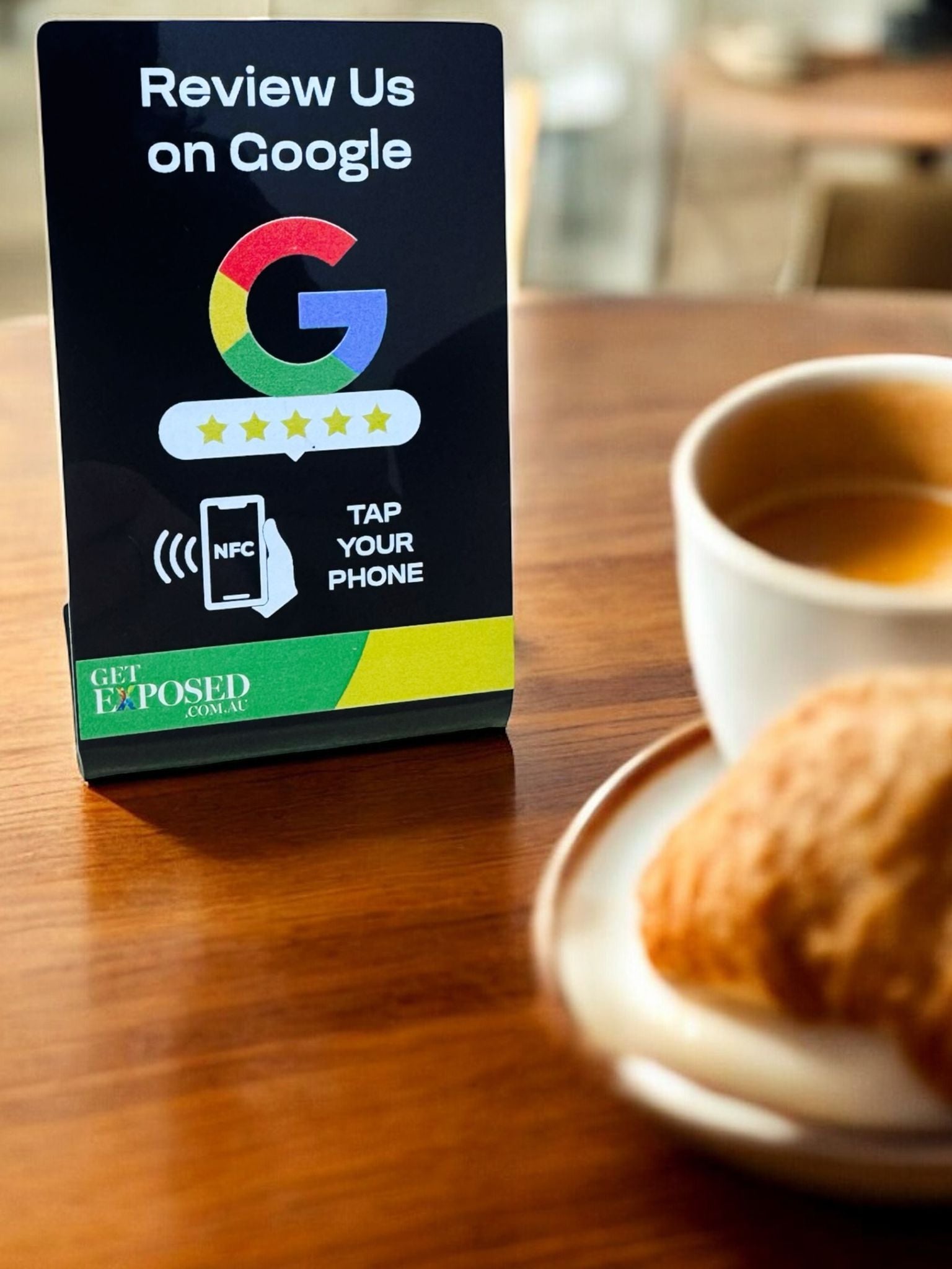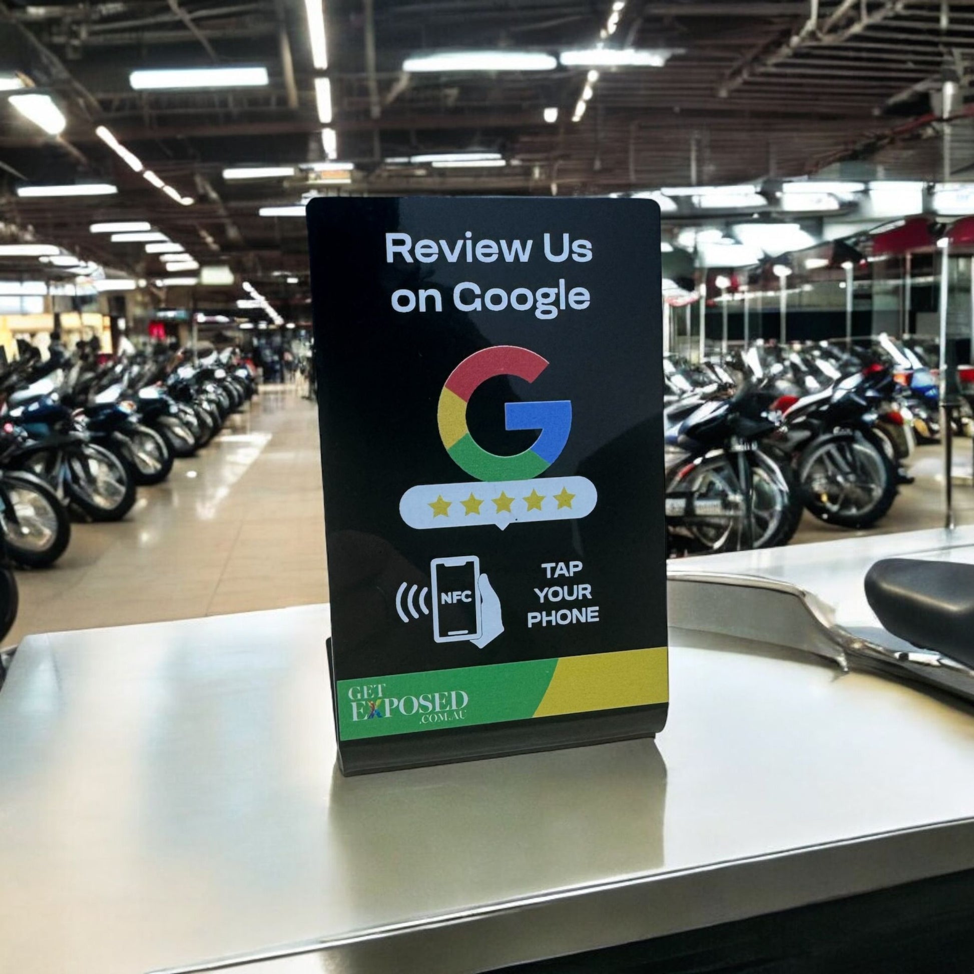 Our products use NFC (Near Field Communication) technology. When a customer taps their mobile device on the card, keyring, plaque, or stand, it instantly opens your Google review link, allowing them to leave a review in seconds.